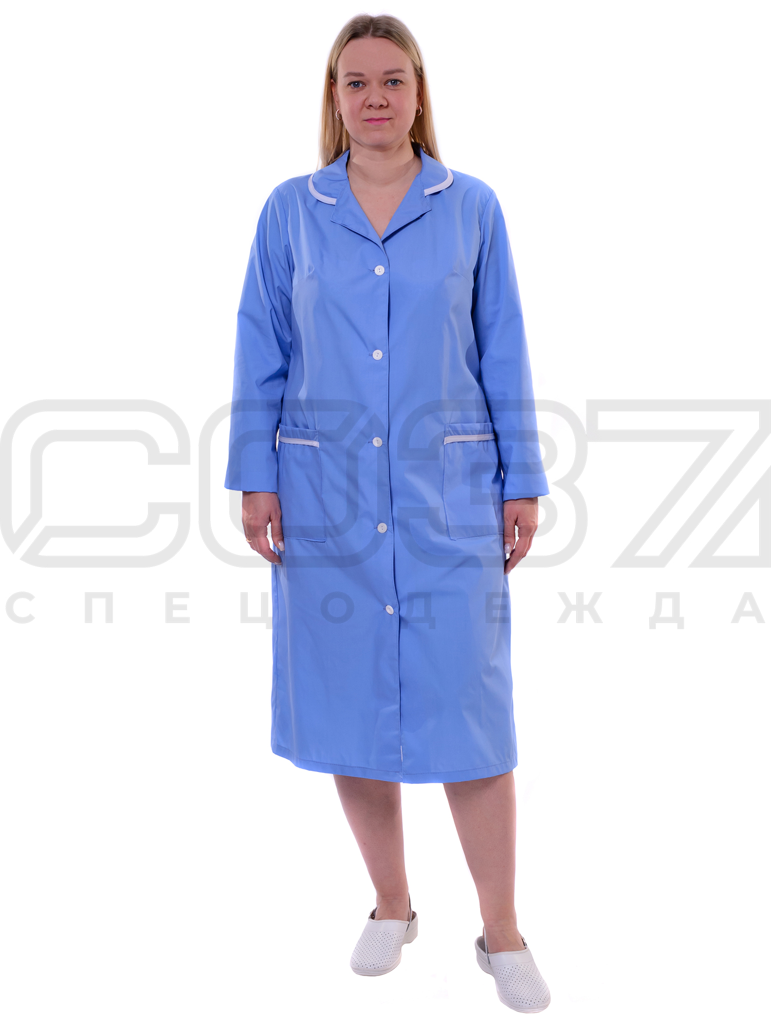 Халат рабочий женский цв.голубой/белый кант тк.тиси в Перми