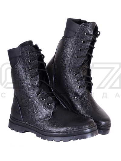 - Верх обуви комбинированный: из обувной искусственной кожи (кирза) и обувной юфти.