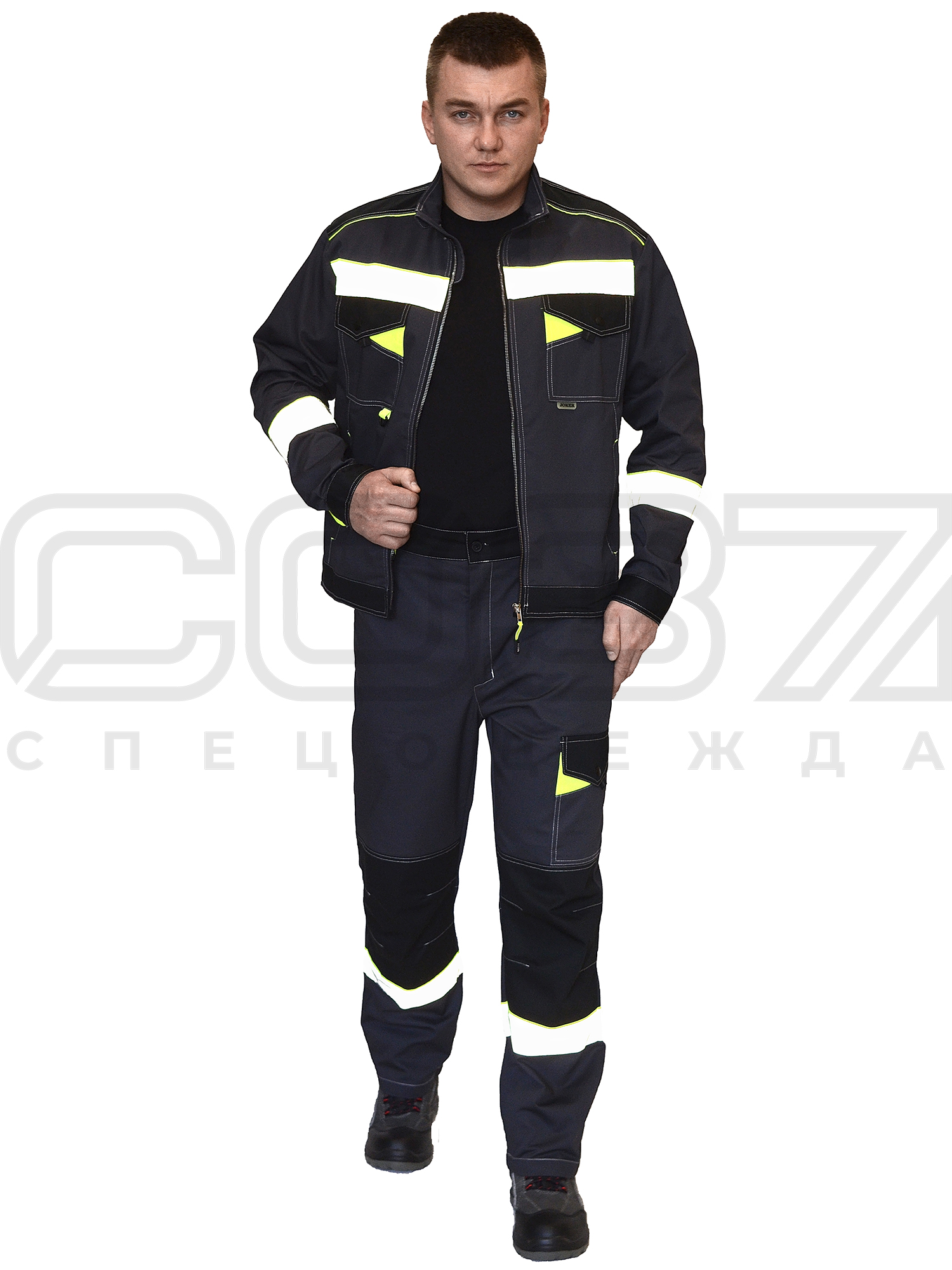 Костюм рабочий "Фрегат Коттон" с СОП цв.т.серый/чёрный/лимон тк.смесовая с МВО (куртка+брюки) в Перми