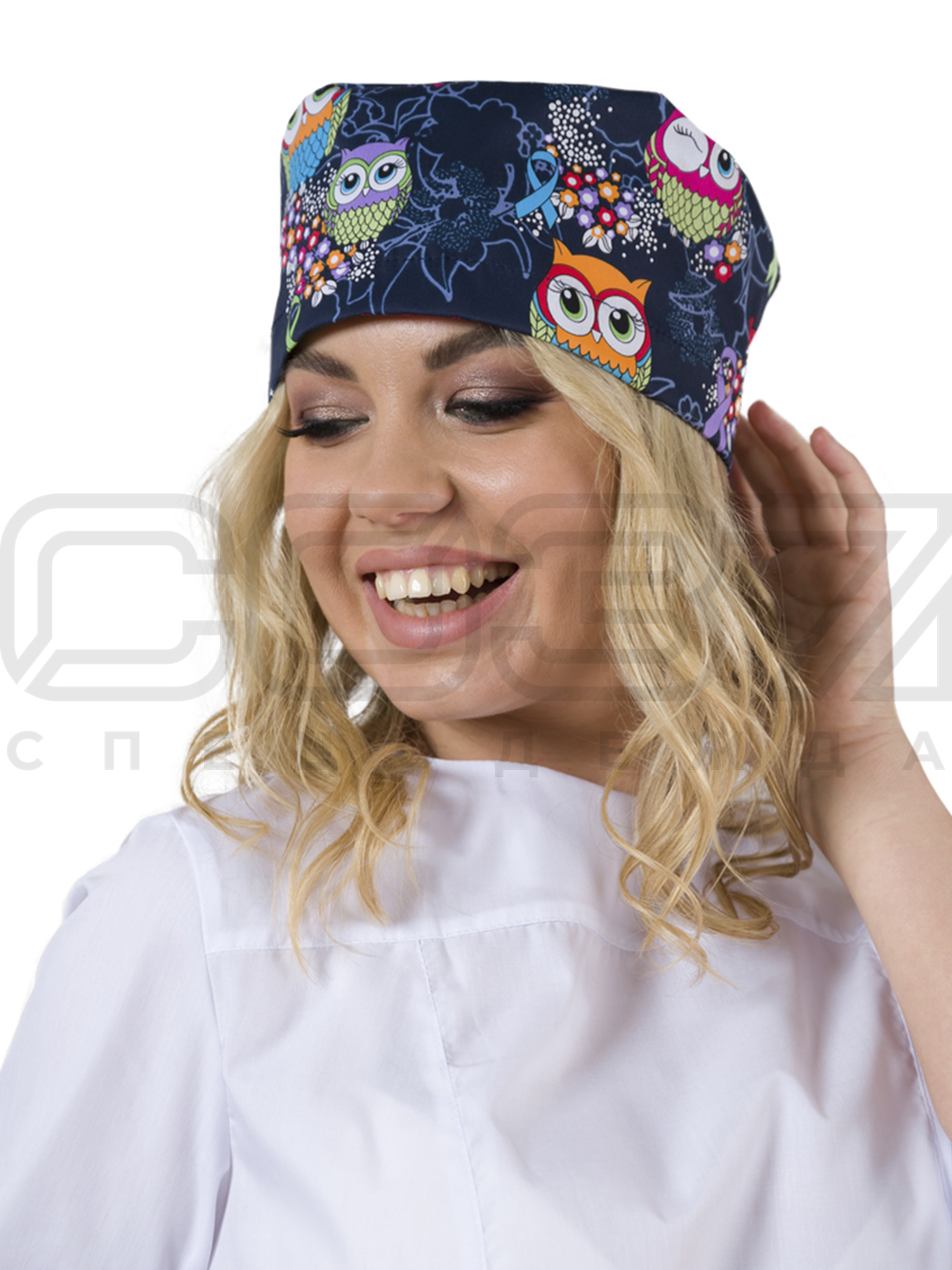 Колпак медицинский на резинке ИМ603(N6-Y2) цв.тёмно-синий/рисунок совы тк.стрейч в Перми