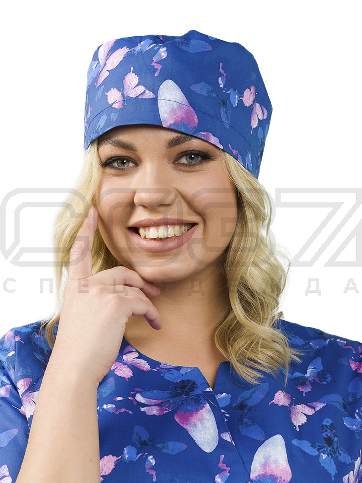 Колпак медицинский на резинке ИМ603(ST11) цв.синий/рисунок тк.стрейч в Перми