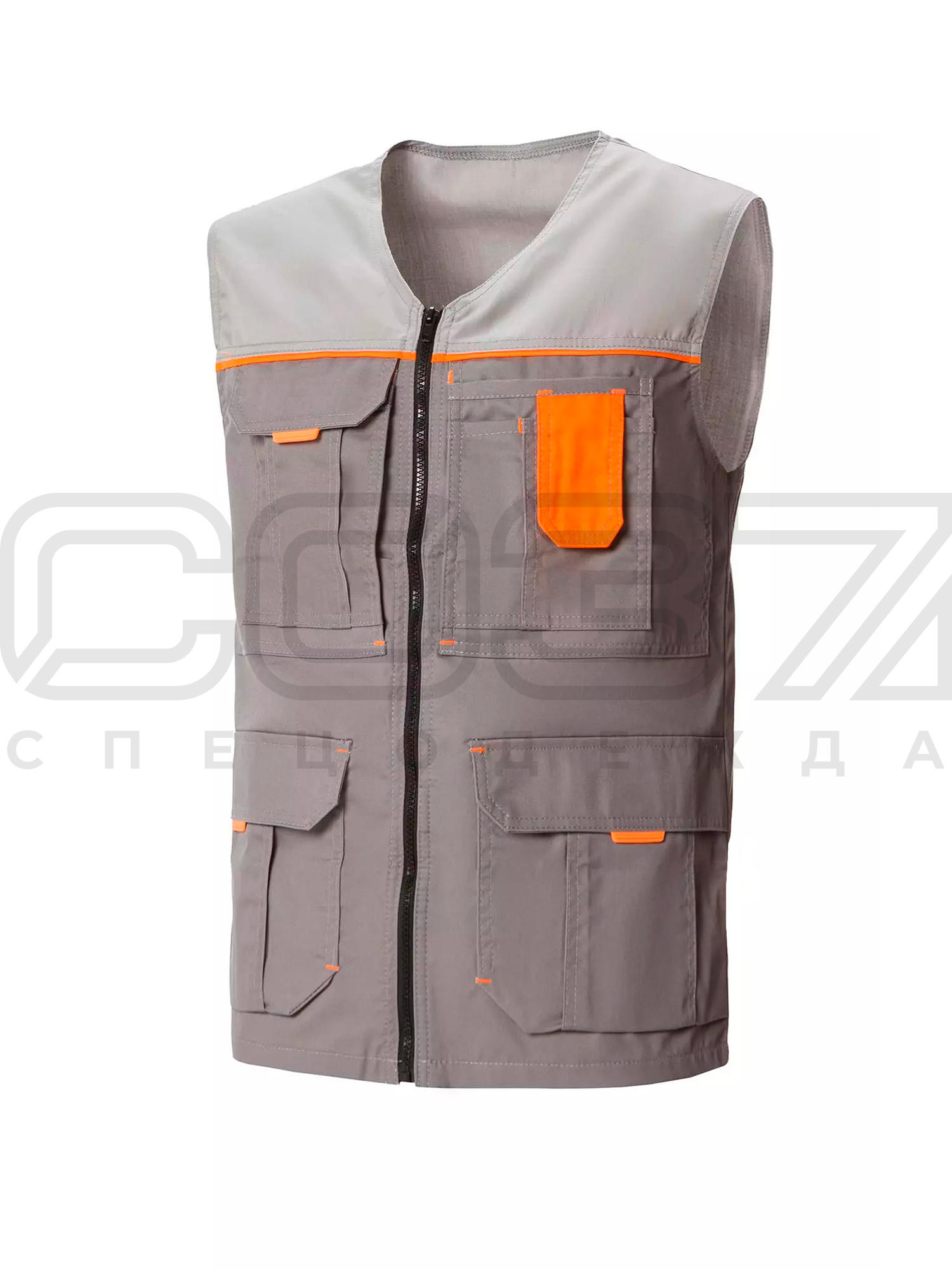 Жилет рабочий летний "Абразив" цв.т.серый/св.серый тк.смесовая в Перми