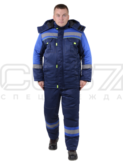 Костюм рабочий зимний "Барей" с СОП цв.т.синий/василёк/неон тк.смесовая (куртка+пк) IV и Особый кл.п в Перми